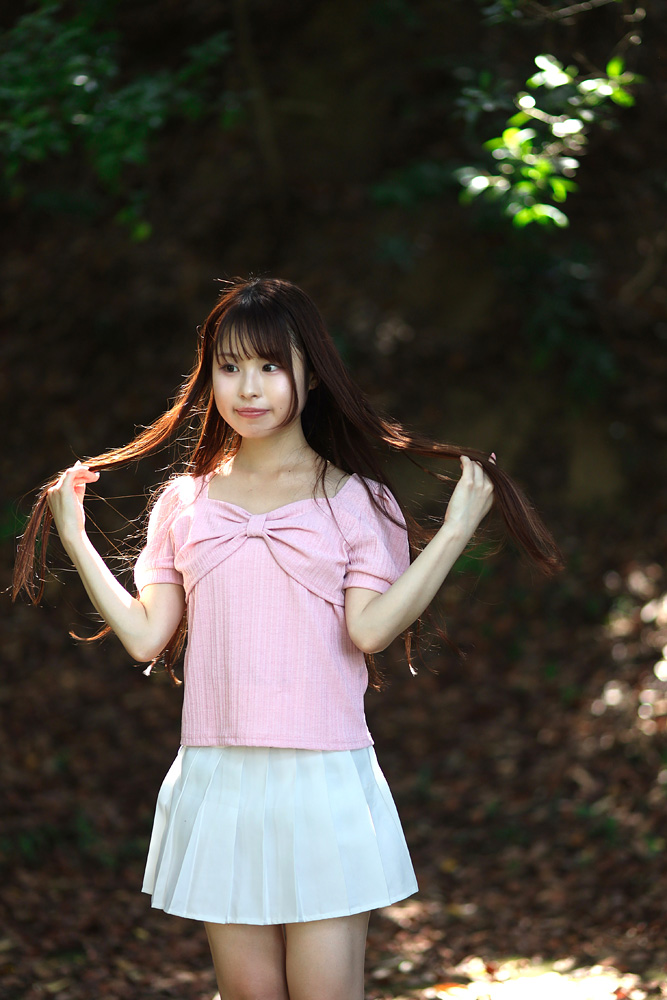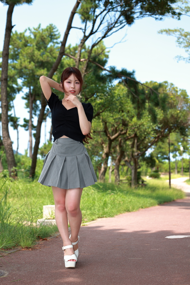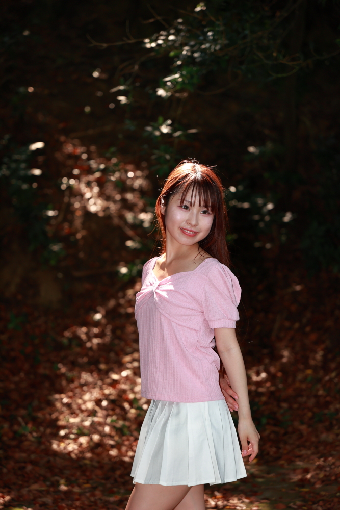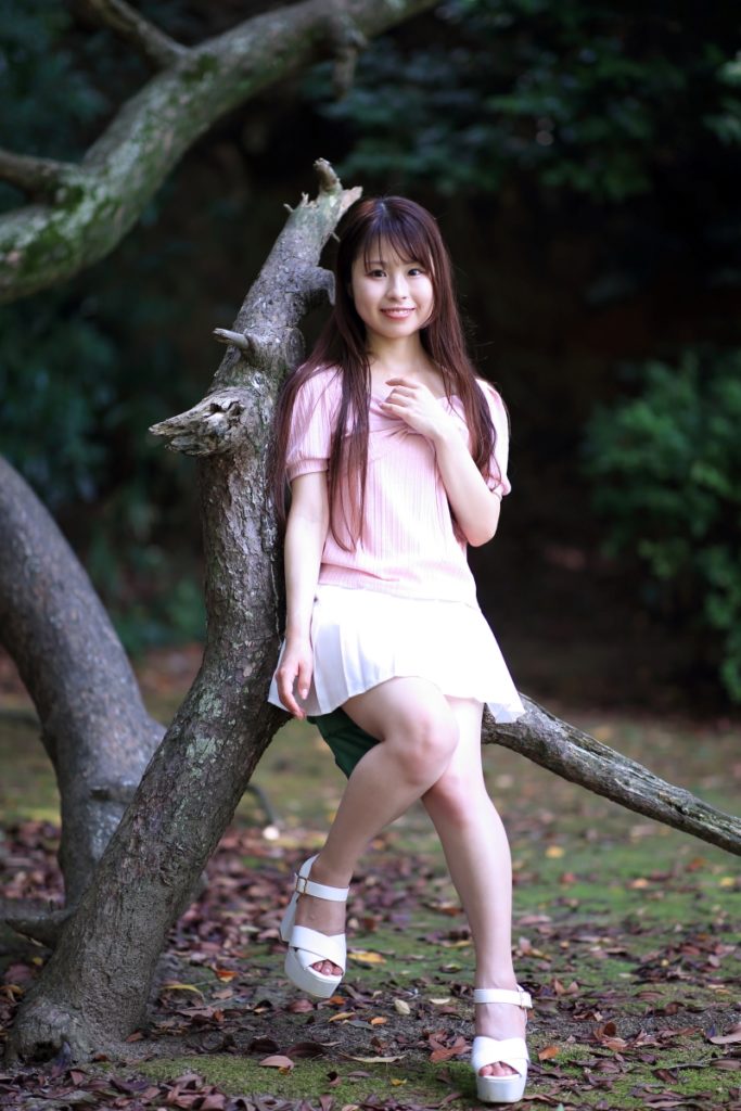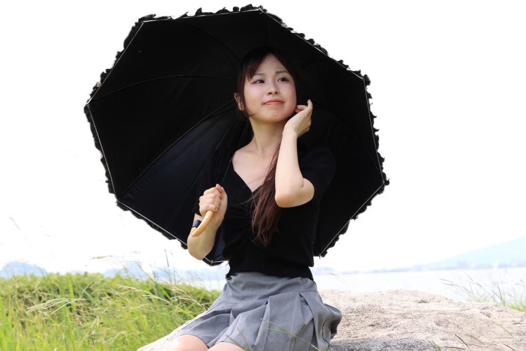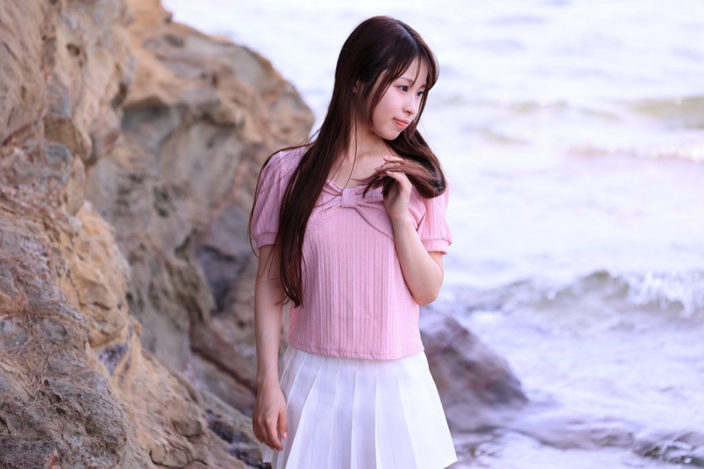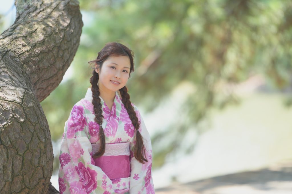 福岡市・小戸公園で開催された浴衣ポートレート撮影会。出演モデル『まな』が夏の午前光の中で涼やかな表情を見せる一枚。